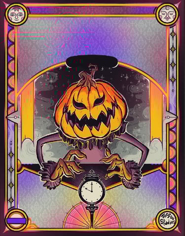 Given the state of the world at the moment, I decided to not go in a classic Halloween, dark, scary and spooky direction. I wanted this year's poster to be bright, colorful and clean without coming off as childish. So I ended up finding inspiration in Art Deco framing, Arts & Crafts patterns and 70's color palettes... really taking from all sorts of art movements over the past 120 years!
