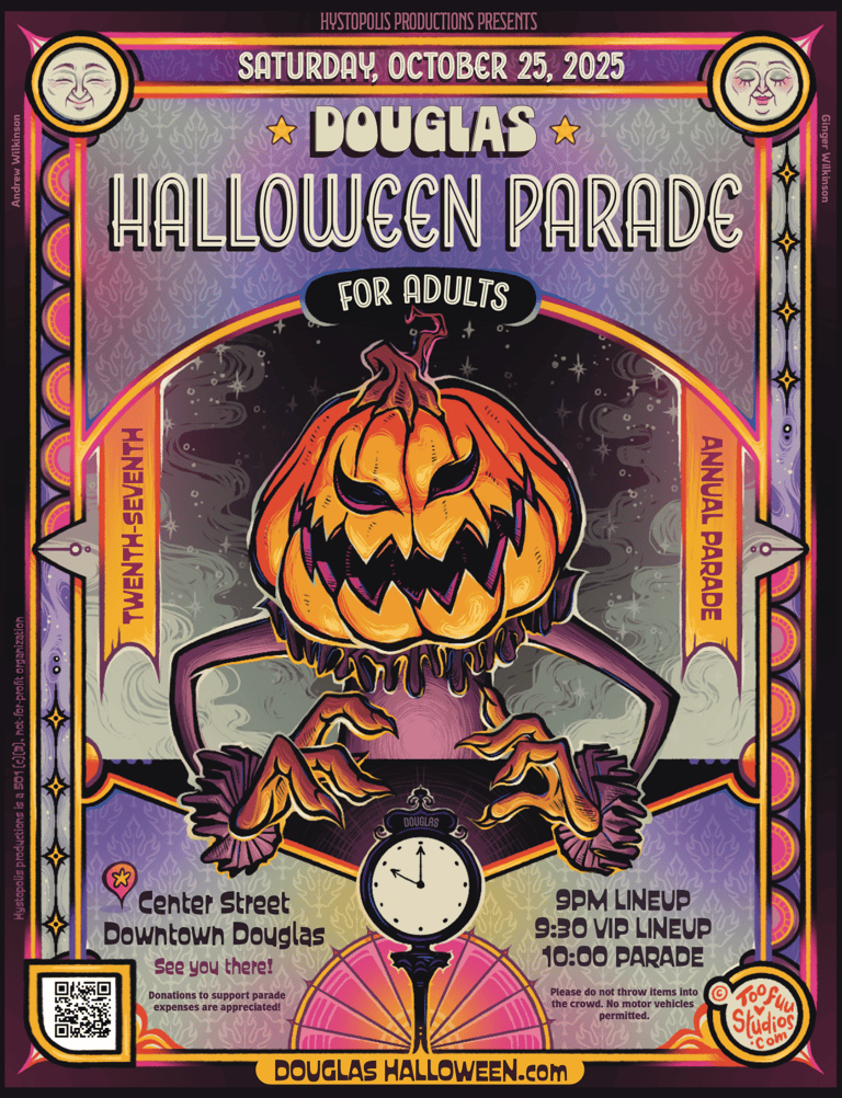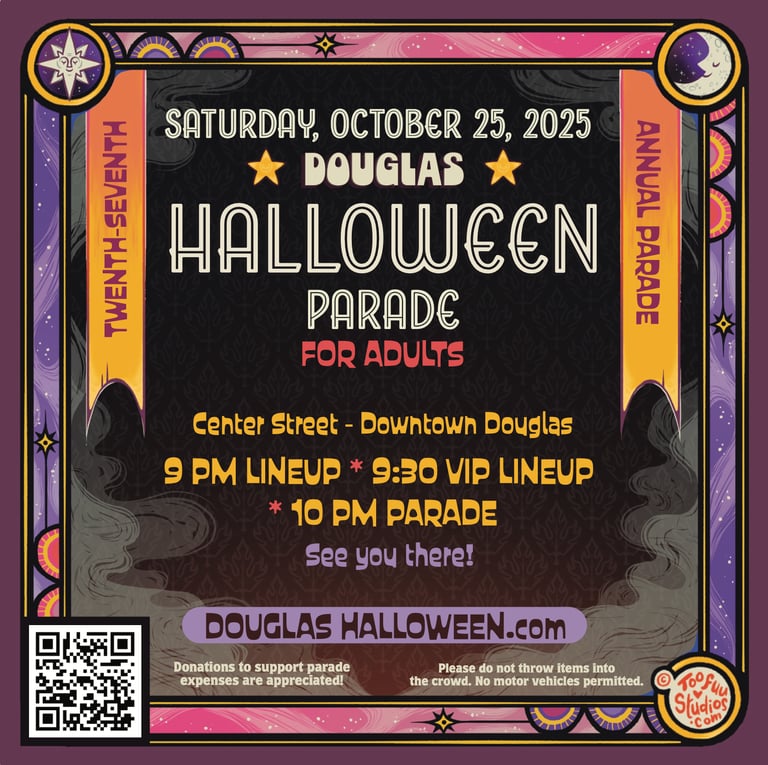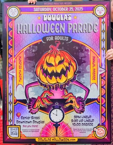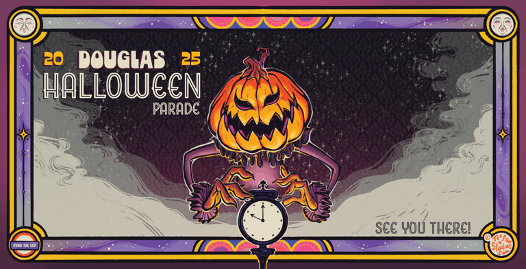 Guess what...? I'm back again for my third year illustrating the Douglas Halloween Parade poster! I beginning to find that this is a job I look forward to all year - I realized in early April I was already considering different designs for the future poster!