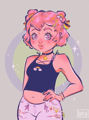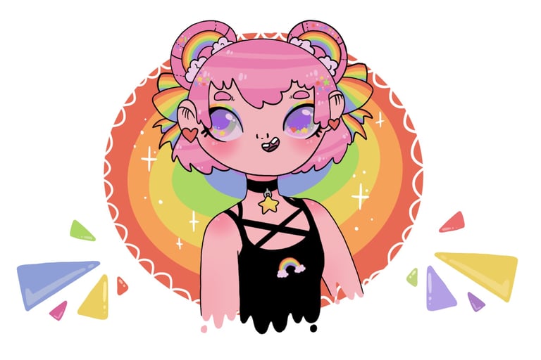 Meet my multicolor rainbow girl! She was originally a #drawthisinyourstyle, but I ended up loving her colors so much that she became one of my semi-regular redraws. I'll put my very recent redraw at the top and my first attempt at the bottom of the post. Hope you liiiiiike :-D