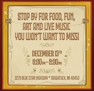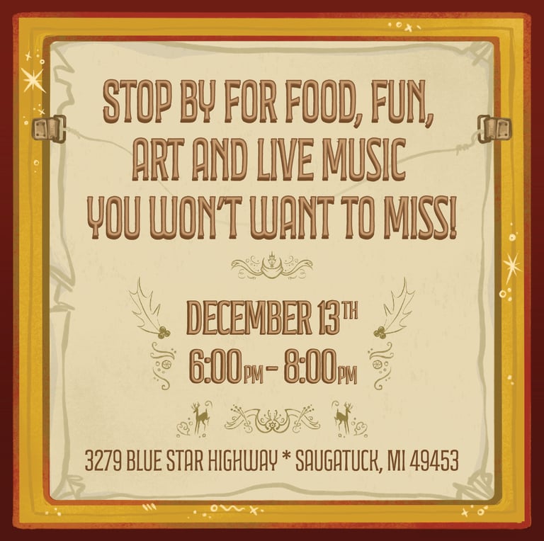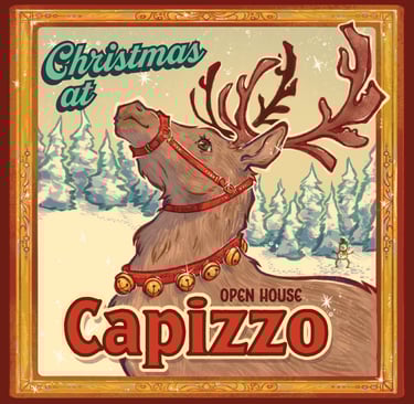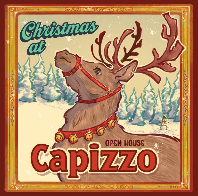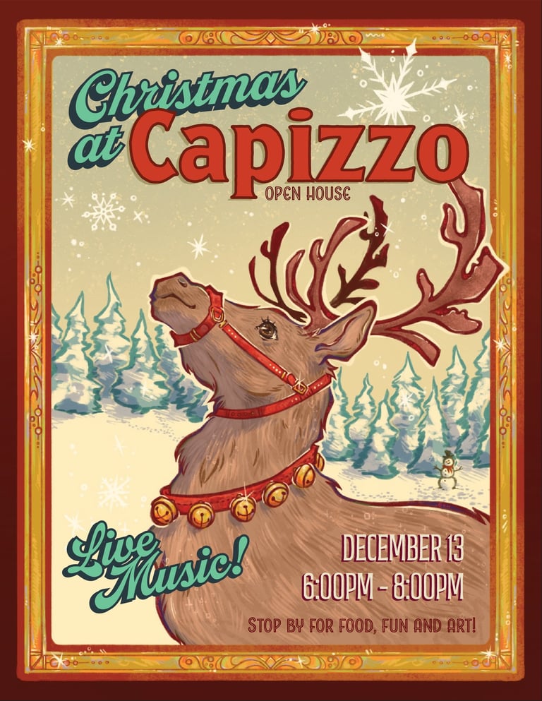 This was a commission for a gallery in my town called Capizzo - They have an awesome, super artsy vibe, so I was delighted when the owner suggested a poster and postcard for their annual Christmas party.