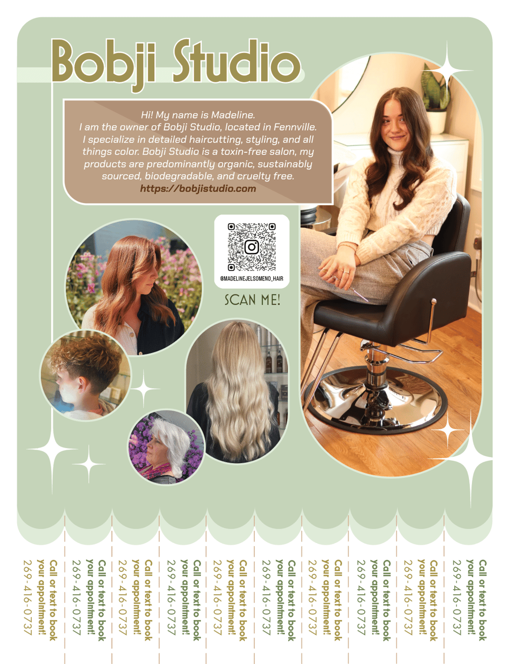 I am a lover of posters as you may have gathered from a lot of my work, so when one of my great friends, Madeline Jelsomeno asked me to create a tear-off flyer for her new business, Bobji Hair Studio, I couldn't say no!