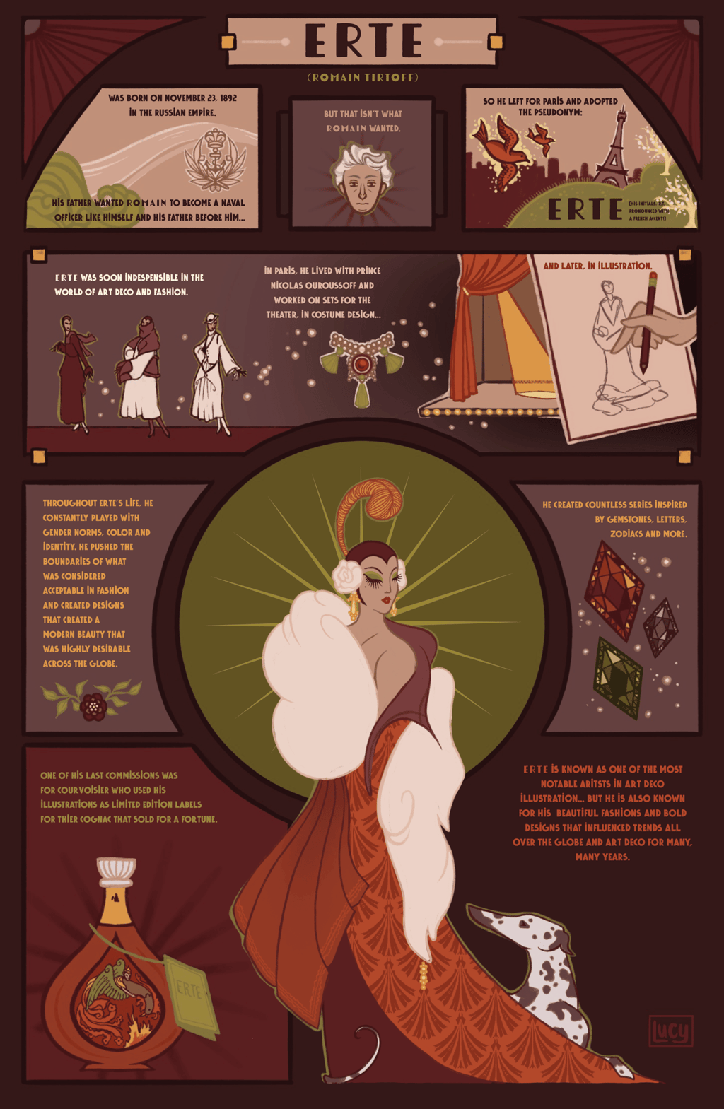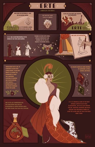 I loved doing the poster for Alphonse Mucha, his style felt far closer to what I normally do so it was super easy to create something inspired by his work. Erté's work on the other hand, was far trickier. I'm not used to working very geometrically so it was a certainly a great challenge!