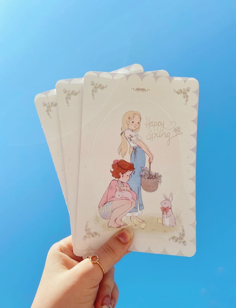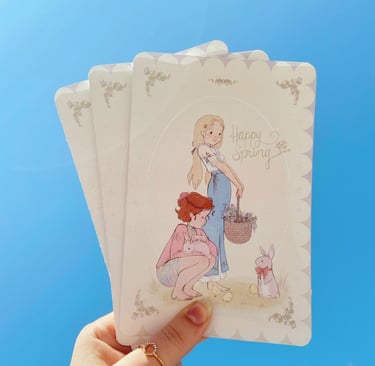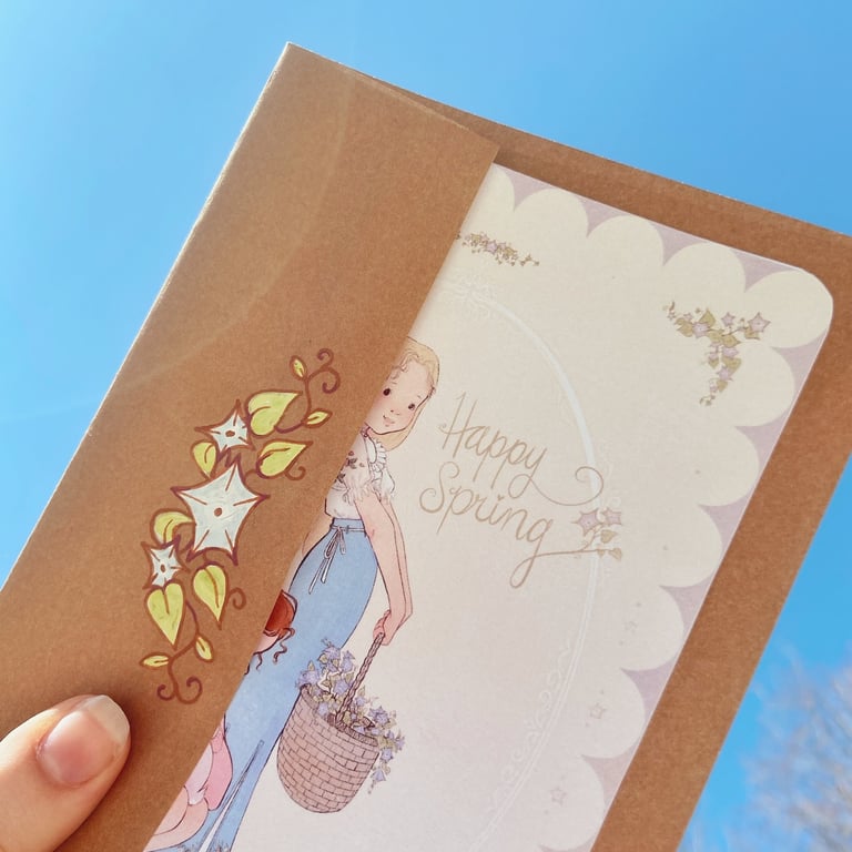 I'm back with another past class project! As with the last Monkey See, Monkey Do post, this was for my illustration history class. I made this card in the style of Sarah Kay with my own characters and design. I ended up sending several out to my relatives and should I ever find time again, I would love to make a set of seasonal greeting cards again.
