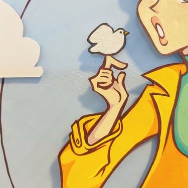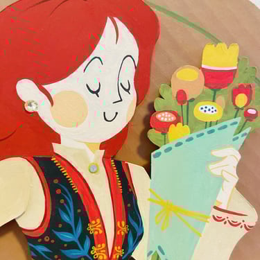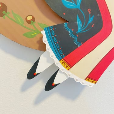 This doll was inspired by Scandinavian, Dutch, Hungarian, and old European folk art as a whole. I used simple shapes and little to no line art to match the style. Her shoulder, elbow, hand and legs are jointed.