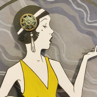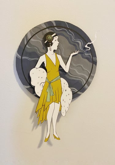 And lastly, my 20's flapper doll, and my oh my, was she an effort! I had planned to do an art nouveau doll but her hair turned out to be offensively difficult to cut out, and I was already cutting it close with finals week on the horizon (pun intended)! So I changed my aim and went with this lovely lady instead. I used a simple palette which was common for the time and gave her a vintage button for her hairpiece which spins.
